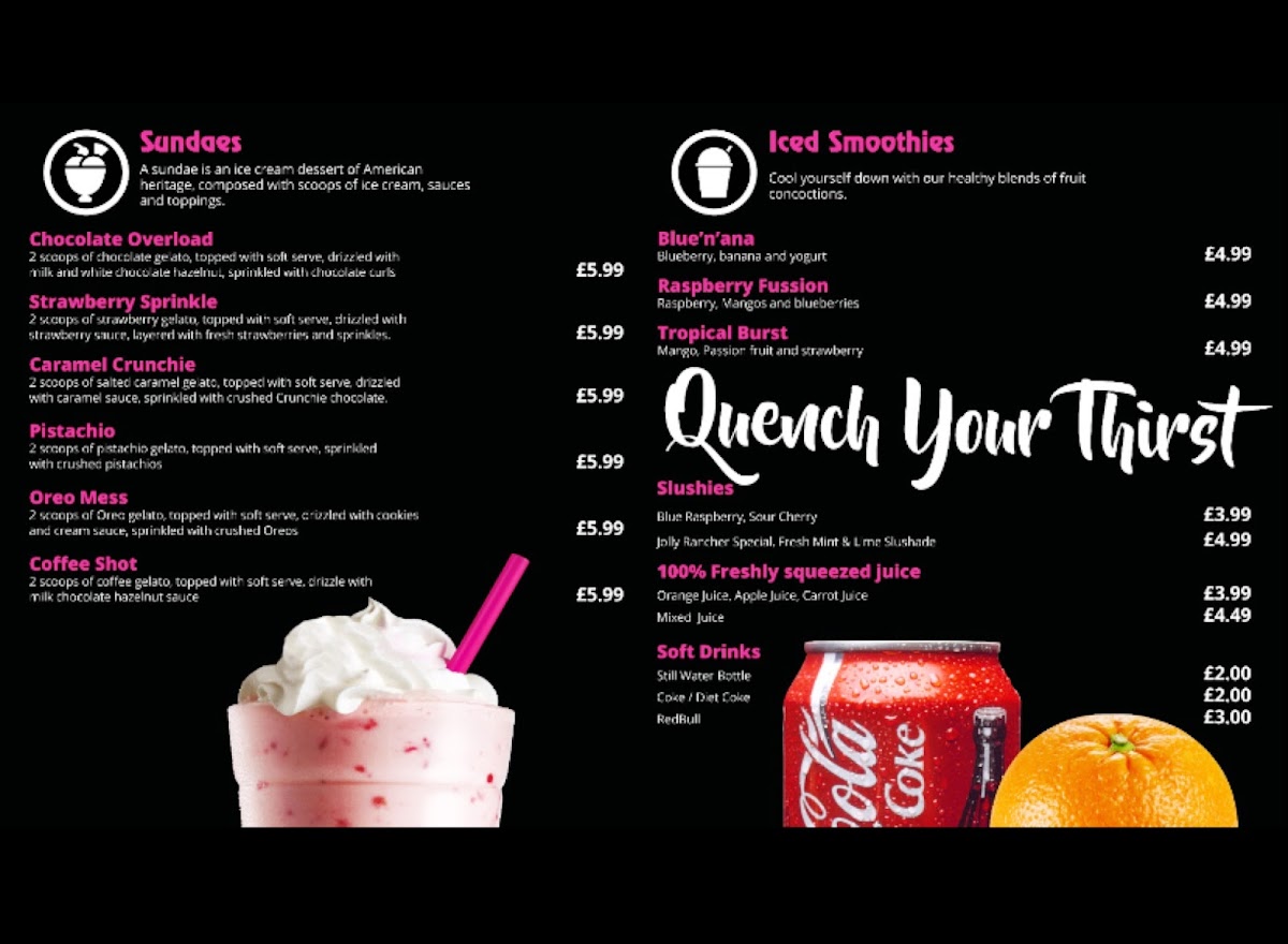 Now, onto the star of the show: the menu! Dessert Lounge Norwich boasts a range of delectable offerings that cater to all palates. For ice cream lovers, their ice cream sundaes are a must-try. With tempting flavors like the Chocolate Overload, Strawberry Sprinkle, and Oreo Mess, each sundae bursts with rich flavors, creamy textures, and delightful toppings that make every bite feel like a celebration. Customers rave about the shakes and the artistry involved in creating these frozen delights.